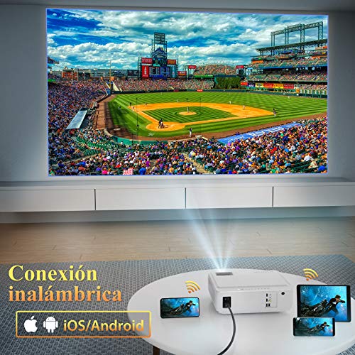 ❤【Nueva Conexión inalámbrica Bluetooth 5.0】 El proyector WiFi S6 es compatible con la conexión wifi para ambos sistemas iOS/android. Puede ver películas, vídeos, fotos y juegos de tu smartphone u otros dispositivos compatibles con Miracle en una gran pantalla. El proyector de películas S6 incorpora el último chip Bluetooth 5.0 que te permite conectar tu altavoz Bluetooth. Los altavoces dobles HiFi Stereo de 10w incorporados con el sistema de sonido SRS proporcionan una gran experiencia auditiva