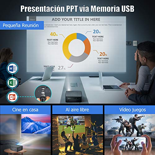 💖【Presentación PPT a través de Memoria USB y Conexión Multimedia】Este proyector Bluetooth Full HD 1080P WiFi incorpora una nueva función que puede leer PPT, PDF, Excels, Words directamente a través de la memoria USB, sin necesidad de conectarlo a una PC o computadora, lo que lo distingue de otros proyectores del mercado. Con 2 puertos USB/HDMI, 1 puerto AV/Audio de 3,5mm, puede conectarlo con Amazon Fire TV Stick/Chrome Book/Roku Stick/Laptop/DVD Player/PS4/TV Box/X-Box/PC, etc.
