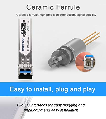 Fácil de usar: instalación fácil, plug and play, admite conexión en caliente. Gire el pestillo del anillo hacia abajo en un ángulo de 107 grados para desbloquear, luego extraiga el transceptor del interruptor. Material metálico de alta calidad de la carcasa, asegurando una larga vida útil de tapones repetidos y duraderos.