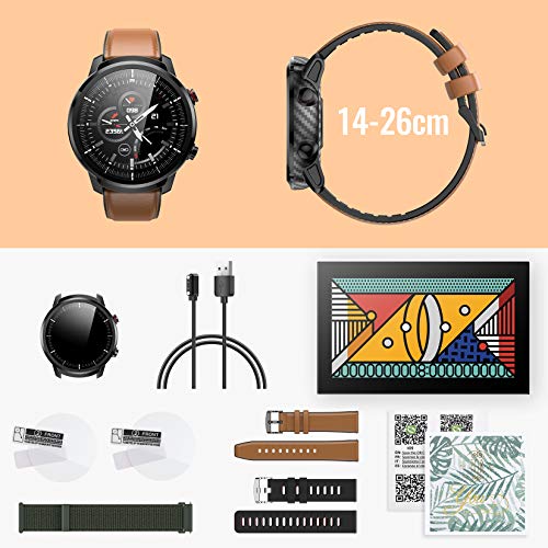 ⌚ 【1.3″ Pantalla Táctil Completa y 3 Correas】 El reloj inteligente tiene una1.3pulgadas pantalla de ultra alta definición IPS de táctil completa, con 8 diferentes de interfaz, y también admite la producción de sus imágenes favoritas como protector de pantalla; Reloj inteligente hay correa de cuero de calidad empresarial, muy moderna; una correa de repuesto de silicona ligera y cómoda; uno correa de nailon, perfecto para aire libre.