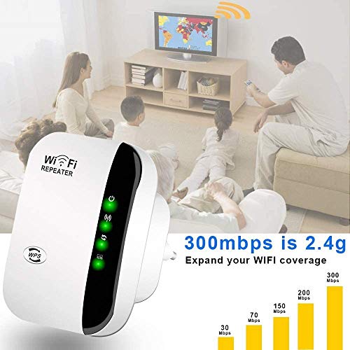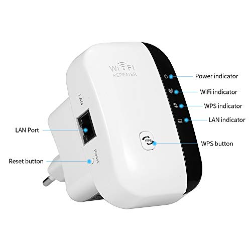 Repetidor WiFi, Amplificador WiFi, 2.4G 300Mbps Extensor WiFi, Amplificador Señal WiFi con Botón WPS y puerto LAN, Apoyo…