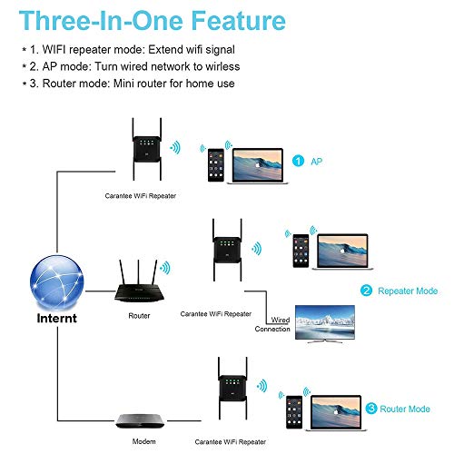 【Compatibilité universelle】 Ce répéteur WiFi peut être utilisé avec n’importe quel routeur Internet sans fil 802.11b / g / n / a / ac et peut connecter jusqu’à 20 appareils tels que des ordinateurs portables, des smartphones, des haut-parleurs, des caméras IP, des tablettes, des appareils IoT, etc. . Il peut facilement étendre la couverture sans fil en appuyant sur le bouton WPS. Ou mis en place via le site Web du navigateur (192.168.11.1) sur presque tous les appareils.