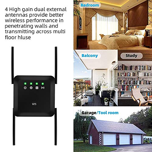 【Jusqu’à 1200 pieds carrés】Ce WiFi Amplificateur équipé de 4 antennes externes à gain élevé, couvrant jusqu’à 360 degrés, jusqu’à 1200 pieds carrés, pénétration plus élevée, aucun signal de perte lors du passage à travers le mur, améliore le réseau WiFi et élimine les zones mortes , jusqu’à la chambre, les étages, les toilettes, le garage, le sous-sol et le jardin, vous permettent de profiter du wifi dans toute la maison.