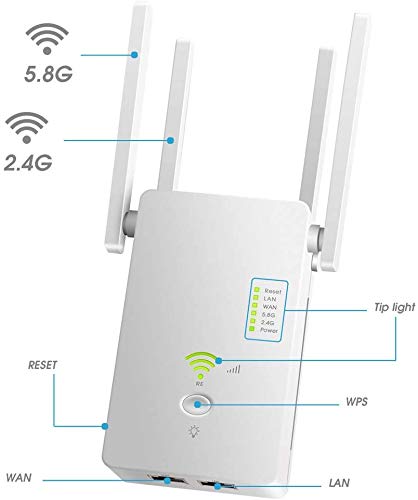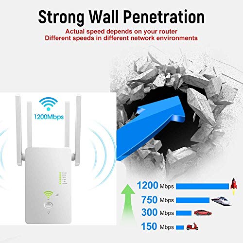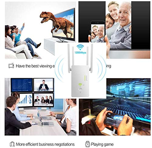 📶 [Extensor WiFi de doble banda]: el repetidor AC1200 tiene dos bandas simultáneas que ofrecen velocidades de hasta 2.4GHZ 300Mbps + 5GHZ 867Mbps, ideal para transmisión HD sin interrupciones y juegos sin interferencias.