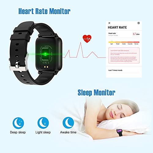 Monitor de datos de deporte y salud: La pulsera de actividad pueden registrar con detalles de sus datos deportivos y actividades, Por ejemplo las calorías, la distancia, los números de pasos, Prueba Presión Arterial y Oxigeno en Sangre. Los sensores de movimiento controlan frecuncia cardíaca automáticamente su ritmo cardíaco con tecnología HRS3300, y prueba de calidad del sueño en tiempo real , realiza un análisis integral de calidad del sueño para ayudar a tener un estilo de vida más saludable.