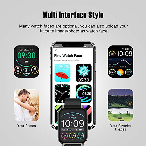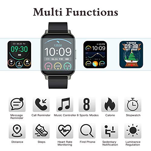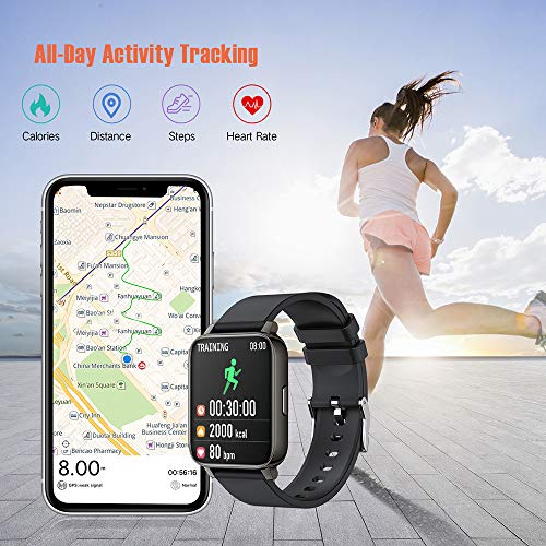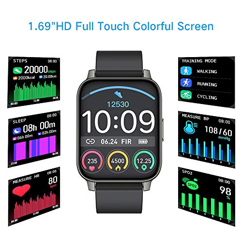 Pantalla táctil completa a color TFT de 1.69 pulgadas(Admite Español): El smartwatch viene con una pantalla TFT-LCD de 1.69 pulgadas que proporciona una profundidad de color increíble y una claridad excepcional. La pantalla es tacto suave con cristal 2.5D duradero de una resolución de pantalla de 240×280 que le permite ver los datos de forma clara y sencilla. La pantalla cristal líquido IPS y watch Face Personalizado y 6 niveles de brillo ajustables que le ofrece mejor experiencia visual.