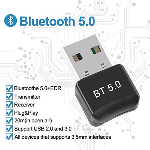 Bluetooth 5.0/ 20M Señal Estable: Adaptador Bluetooth 5.0 para computadoras, el rango de frecuencia es de 2.4 GHz, transmisión de señal de 20M, aplica EDR (transmisión de datos más rápida), velocidades de transferencia de hasta 3Mbps.