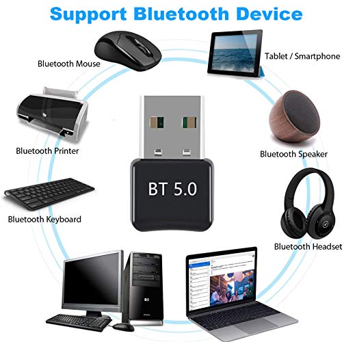 Múltiples usos: Bluetooth CSR 5.0 USB Dongle adaptador puede fácilmente añadir función Bluetooth para su ordenador, permite al ordenador conectar de forma inalámbrica más dispositivos Bluetooth como auriculares Bluetooth, altavoces, receptor, teclado, ratón, smartphone, tableta, impresora, proyector.
