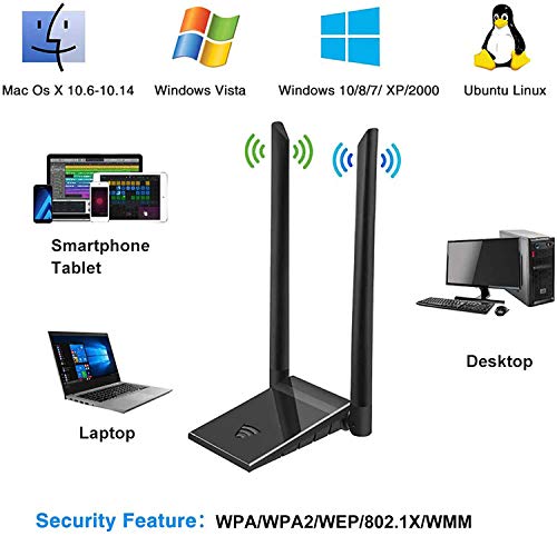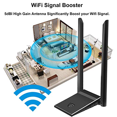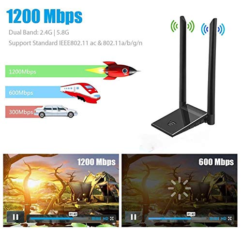【PUERTO USB 3.0】: El adaptador wifi de 1200 Mbps utiliza un puerto USB 3.0 estándar, que es 10 veces más rápido que el USB 2.0. Es retrocompatible con dispositivos USB 2.0 y 1.1 para garantizar que el adaptador Wi-Fi tenga el mayor rendimiento y una conexión a Internet más estable.