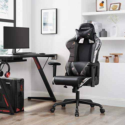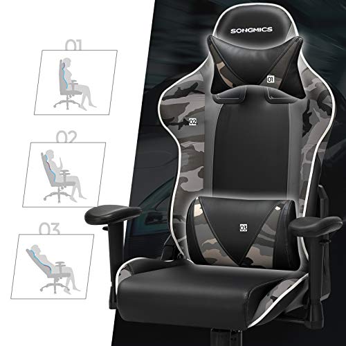 Qué hay en la caja: Una silla gaming de SONGMICS ideal para quienes pasan muchas horas frente al ordenador, sentados en un escritorio, que con su diseño ergonómico sigue las líneas de tu cuerpo y reduce la presión sobre el cuello, los hombros y la espalda