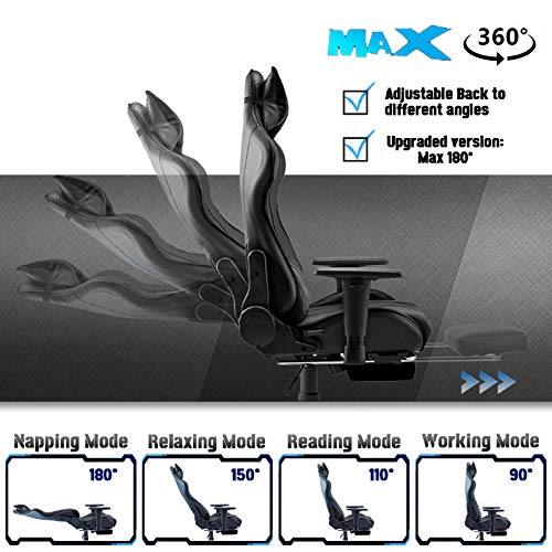 🏆【Actualización de Accesorios】 10 cm apoyabrazos ajustables que puede ajustar libremente según sus deseos. El marco de acero y el sistema de elevación de gas SGS-3 pueden soportar un peso de gamers de hasta 130 kg. 90 ° -180 ° reclinable, giro de 360 °. 5 ruedas giratorias silenciosas de PU.
