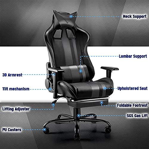 🏆【Silla Gaming Ergonómico】 Soontrans Silla Gaming está diseñada para aquellas personas que buscan la excelencia en comodidad cuando se está sentado frente al ordenador en casa o en el trabajo. El respaldo alto le da un fuerte apoyo para su cuello, así como el relleno de alta densidad con revestimiento de cuero suave de PU. Aumenta la función de balancín, relájate y disfruta de su uso, y es claramente diferente de las sillas normales.