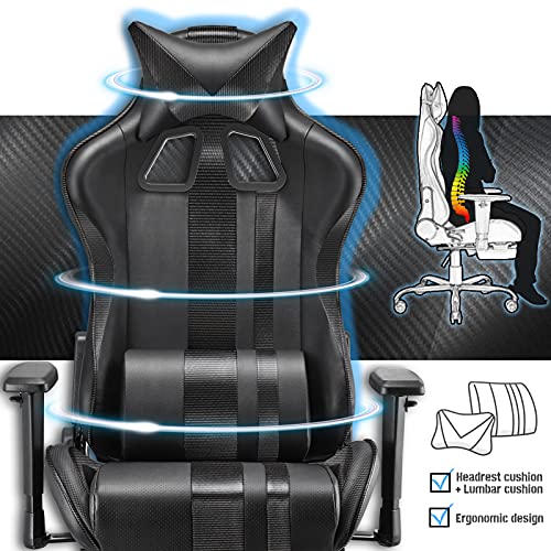 🏆【Fibra de Carbono y Cuero de PU leather】 Cuero de fibra de carbono especialmente diseñado en el sillín para agregar transpirabilidad. Es mucho más suave que el cuero normal, que es más transpirable, resistente al desgaste y fácil de limpiar. Adecuado para quienes se sientan en la silla de juego durante todo el día.