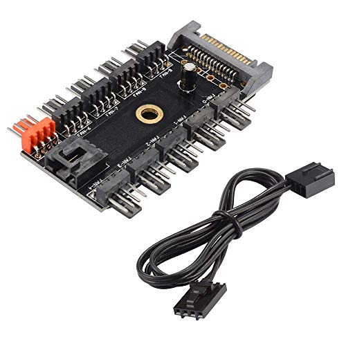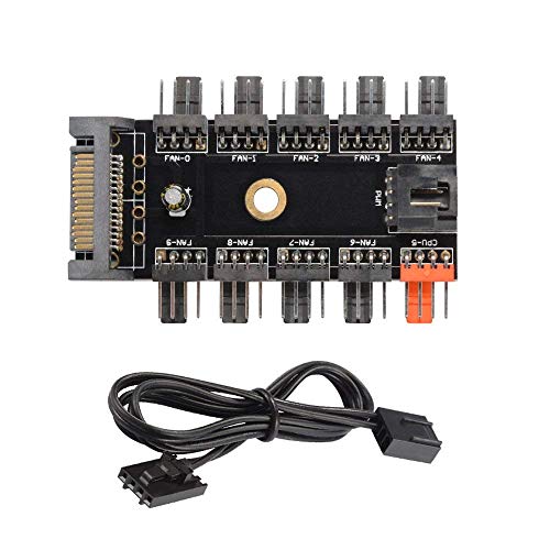 StormPC Hub de ventilador de PC, alimentación de hasta 10 ventiladores PWM, con control de placa base, alimentación SATA