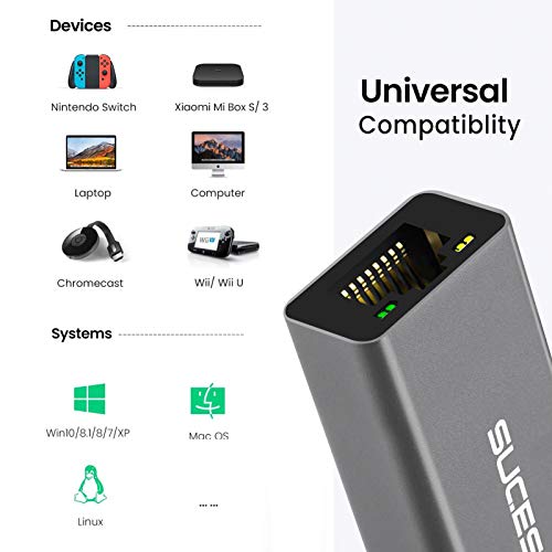 Fácil de usar: Este ligero USB al adaptador de red es un accesorio perfecto para añadir un puerto RJ45 estándar a su Ultrabook, portátil o Macbook Air para la transferencia de archivos, videoconferencias, juegos y streaming de vídeo HD.