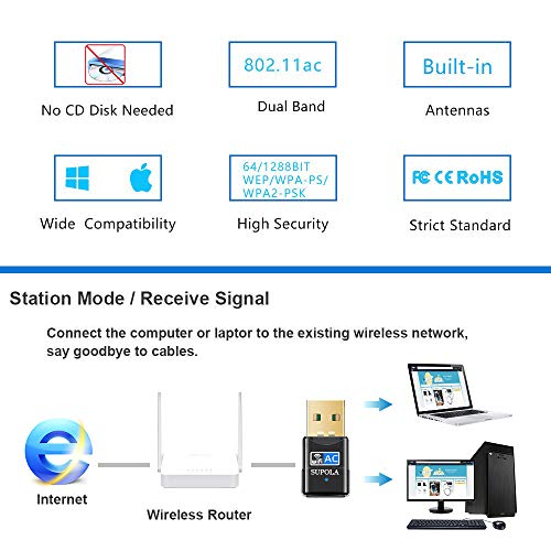 💎SUPOLA Wifi Antena es compatible con win 10/8/7 y Mac OS X 10.9 ~ 10.15. PLUG and PLAY: no se requiere disco de CD o descarga gratuita del controlador. Deshágase de los torpes CD y los complicados pasos de instalación. Simplemente conecte nuestro adaptador WIFI USB inalámbrico a su PC/desktop/laptop, luego elija el controlador correcto para instalar y luego elija su red e ingrese la contraseña. (❌No es compatible con Linux y Modo AP, TV, Proyector, Impresora).