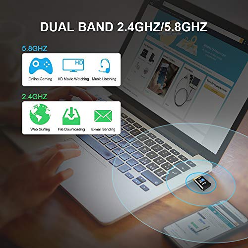 💎Innovador mini adaptador inalámbrico de doble banda, la tecnología wifi más nueva y potente: 3 veces más rápido que las velocidades inalámbricas N. La banda dual reduce la interferencia para mejores conexiones a más redes inalámbricas.