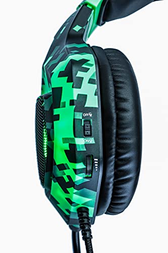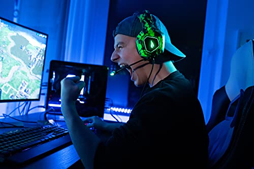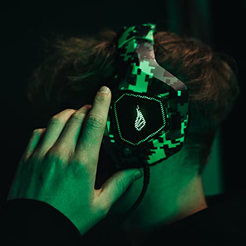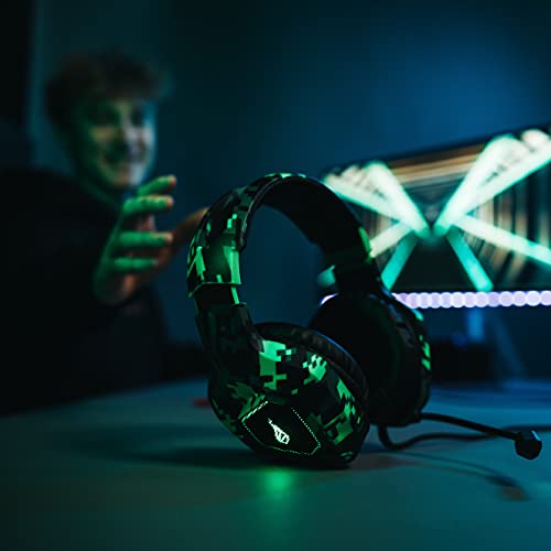 ÓPTIMO ASPECTO GAMER: El headset no solo impresiona por su gran sonido – con iluminación LED a sus lados y elegante dieseño de camuflaje, es un equipamiento Gamer absolutamente vistoso.