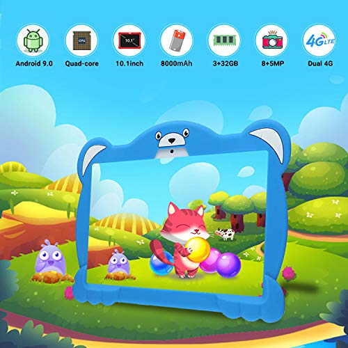 🎁【Android 9.0 Certificado por Google GMS & 4G Dual SIM】El nuevo sistema Android 9.0 Certificado por Google GMS de la quad-core 1.3Ghz tablet baratas garantiza un funcionamiento estable y de alta velocidad de la tableta. Es fácil cargar múltiples programas. La tarjeta SIM también se puede colocar en Tablet PC para proporcionarle una red de datos 4G, lo que hará que su trabajo y su vida sean más cómodos y fáciles en cualquier momento y lugar.