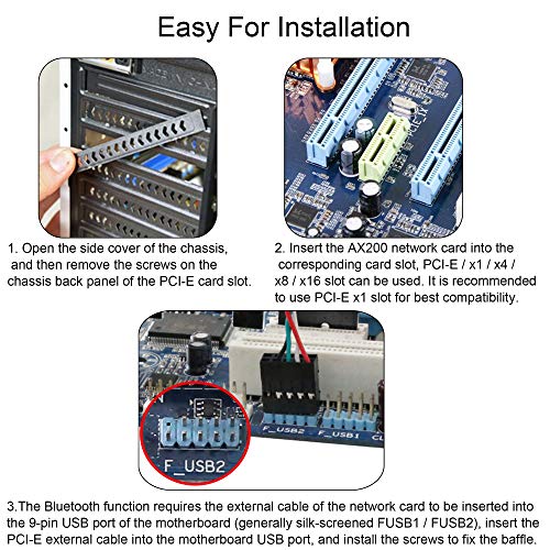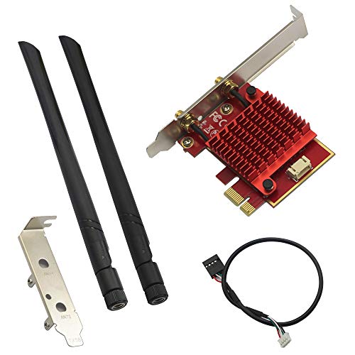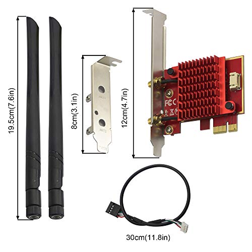 Adaptador Bluetooth 5.0: el rango de Bluetooth 5.0 es 4 veces mayor que el de Bluetooth 4.2, la velocidad de transmisión se duplica, y la velocidad de transmisión se cambia, reduciendo así el rendimiento total. Este WiFi 6 para PC y ordenadores de escritorio proporciona más comodidad y requisitos para auriculares Bluetooth, teclados, ratones, etc. (Nota: Debe conectar el cable de alimentación a la interfaz usb2.0/3.0 de 9 pines de la placa base para lograr características Bluetooth).