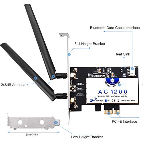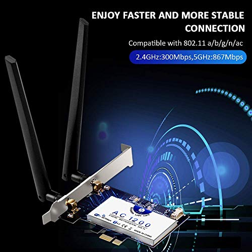 🚀 Banda Dual 2.4G / 5G: Adaptador pci wifi actualizada, mediante la interfaz PCI-E, para que la compatudora pueda usar la red WiFi, elegir libremente la señal de red, datos reales: la señal 2.4G puede través de la pared y alcanzar velocidad de 300Mbps; la transmisión 5G puede mayor alcance 867 Mbps en el juego ¡No hay pausa durante juego o video!