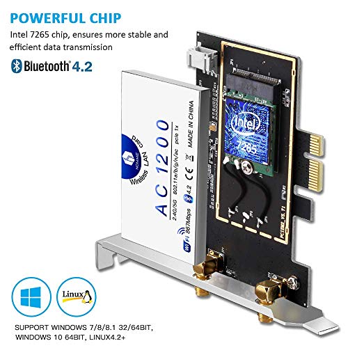 🚀 Intel-1200M Transmisión de Alta Velocidad : Tarjeta de red tiene conexión inteligente, transmisión de banda dual, compatibilidad con el protocolo inalámbrico de nueva generación 802.11ac y con a / b / g / n. Con el módulo wifi de alto rendimiento Intel 7265AC, estar seguro de que puede mantenerse estable cada vez que se conecte.