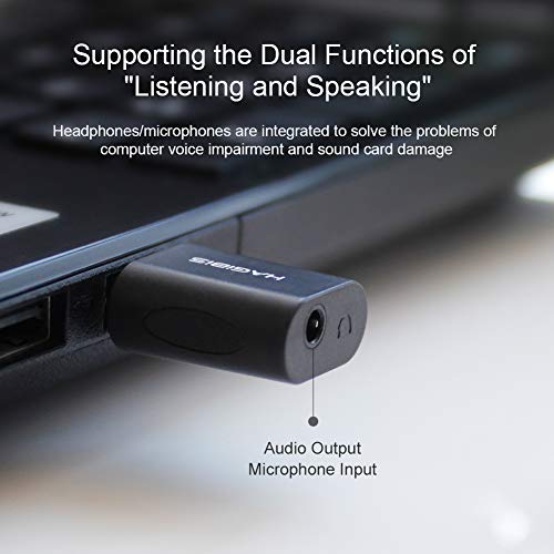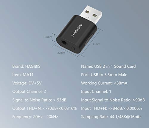 El Hagibis adaptador de audio USB a Jacks puede agregar fácilmente un puerto TRRS de 3.5 mm jacks (interfaz de entrada y salida de audio integrada) a su PC a través de una interfaz USB disponible. NO requiere instalación, plug and play. Puede omitir la tarjeta de sonido defectiva o el puerto de audio defectuoso de 3.5 mm del sistema de su portátil/ordenador y recuperar la función de audio y micrófono. Puede conectar micrófono, altavoz, auriculares. Dispone de material de calidad para evitar interferencias y mejorar la calidad de sonido de transmisión. AHORRE tiempo y dinero en reemplazar una tarjeta de sonido estropeada o dañada.