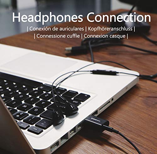 Tarjeta de sonido externa: Conecte USB con sus auriculares 3.5mm, cascos, altavoces o micrófono.