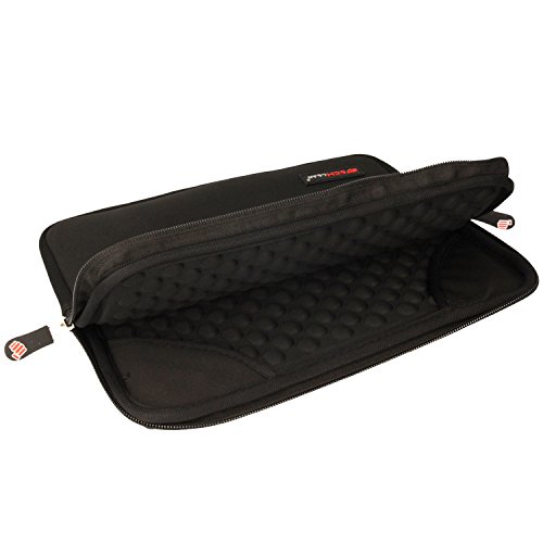 TECHGEARA’s SENTINEL PRO Sleeve case has been designed specifically to offer extra protection for tablets, Sat Navs and much more This stylish slim ; lightweight water resistant neoprene case completely encapsulate your device and is internally fully padded for added protection from scratches and bumps that may otherwise occur on your tablet. There is a zipped front pocket which stores your essential accessories. Confidently tote your power adapter, USB cable, earbuds or phone in the outer pocket. The zippered closing mechanism adds even more protection and prevents the tablet from falling out when stored. The inner is lined with shock absorbing bubble foam to protect from minor falls and pressure. Padding is lined with soft, non-abrasive jersey ; there is binding at the bottom of the case and along the zip, to protect the device from the zip. The case is universal, depending on size. Please check the dimensions, in our pictures, to ensure it will be suitable for your device. Neoprene can stretch, but if stretched for long periods it may not return to its original shape. Available in detail colours with colour matching zip, bubble lining ; front pocket lining Easily transport this sleek designed case on its own, or tucked into another bag.