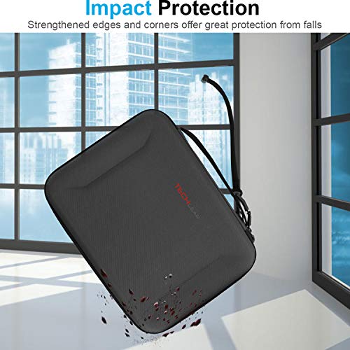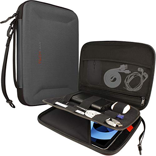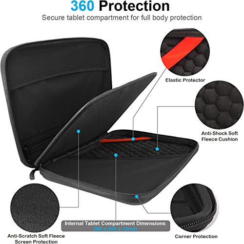 Protección extrema: el exterior de la carcasa dura de EVA es a prueba de golpes y salpicaduras y evita la deformación externa y proporciona una buena protección sólida en las esquinas. El compartimento principal con su capa interna acolchada de burbujas y cubierta de pantalla con forro polar suave ayuda a proteger tu dispositivo de arañazos y daños. La correa elástica interna mantiene tu iPad o tablet perfectamente ajustado.