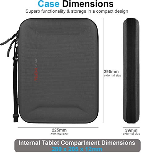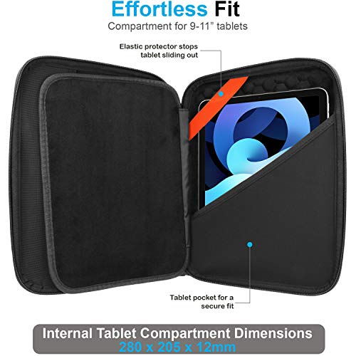 Compatibilidad: esta funda portátil está diseñada para la mayoría de tabletas de 9 a 11 pulgadas. Compatible con iPad Air de 4ª generación de 11 pulgadas, iPad 8ª y 7ª generación de 10.2 pulgadas 2020/2019, iPad Pro de 11 pulgadas (1ª y 2ª generación), iPad Pro de 10.5 pulgadas, iPad 9.7 6ª / 5ª generación (2018 / 2017), iPad 1 / 3. 4, iPad Air Air 4, iPad Air / Air 2 / Air 3, Lenovo Tab 4 10 pulgadas, Galaxy Tab S3 S4 S5 S6 Lite S7, Tab A 10.1 pulgadas 10.5 pulgadas, Tab A7 10.4 pulgadas, Surface Go / Go 2 10 pulgadas y más. Tamaño del compartimento interno para tableta: 280 x 205 x 12 mm.