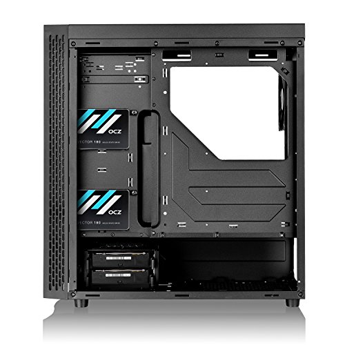 Thermaltake View 22. Factor de forma: Midi-Tower, Tipo: PC, Materiales: SPCC, Vidrio templado. Ubicación de fuente de alimentación: Fondo. Diámetro de ventiladores frontales soportados: 120,140 mm, Diámetro de ventiladores traseros soportados: 120 mm, Diámetros de ventiladores superiores soportados: 120,140 mm. Tamaños de disco duro soportados: 2.5,3.5″. Ancho: 223 mm, Profundidad: 491 mm, Altura: 467 mm