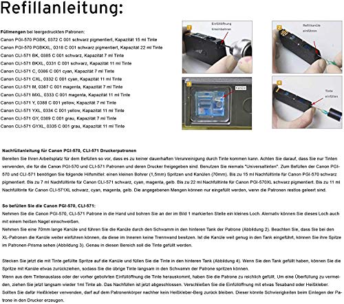 La tinta de la impresora se desarrolló especialmente para impresoras con cartuchos Canon PGI-570 / CLI-571 y ofrece los mejores resultados de impresión