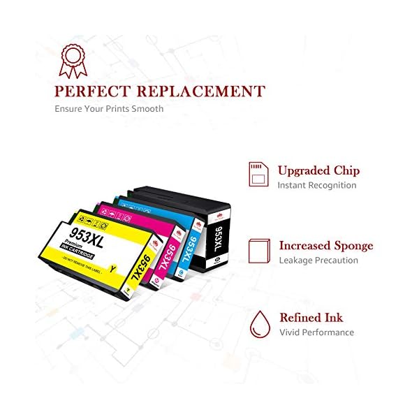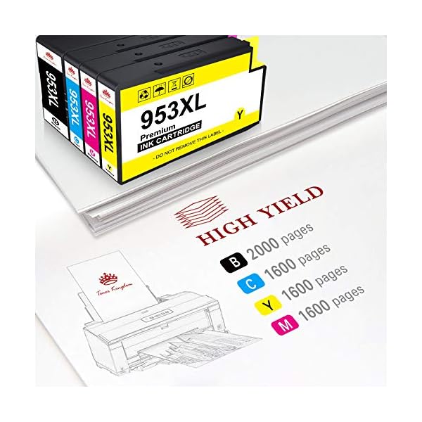 Contenido del paquete: cartuchos de tinta compatibles 953XL, 1 negro, 1 cian, 1 amarillo, 1 magenta