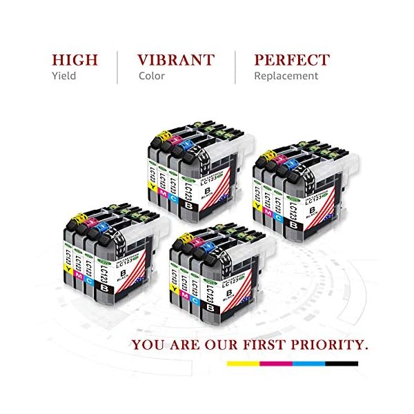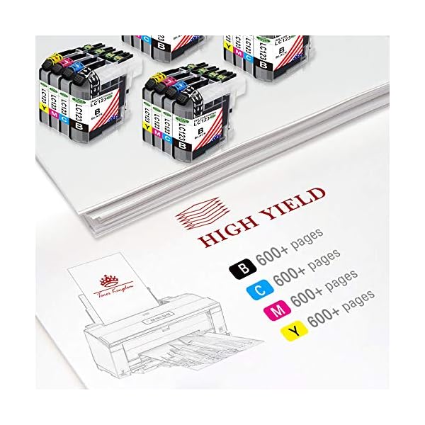 entajas: los lc123xl cartuchos compatibles con Toner Kingdom tienen una calidad de impresión más alta que otros, resisten la decoloración, manchas y borrosa, así como le ofrecen impresiones confiables.