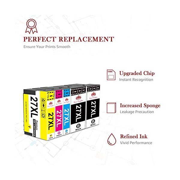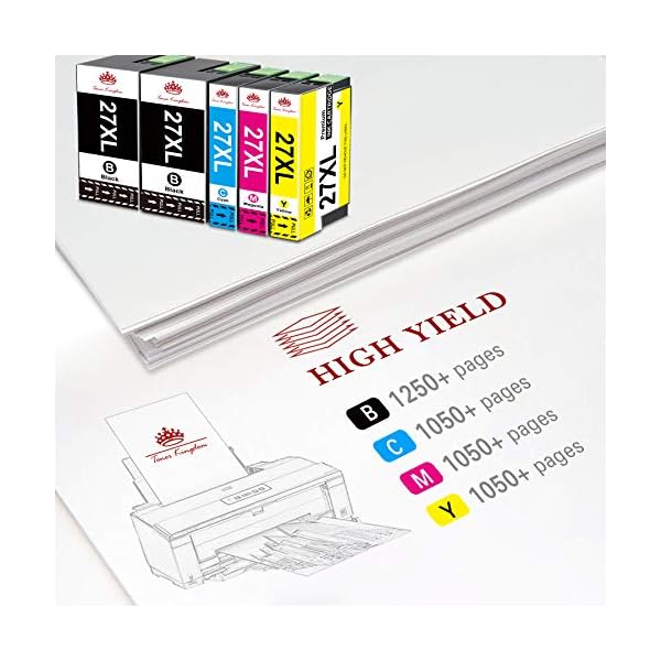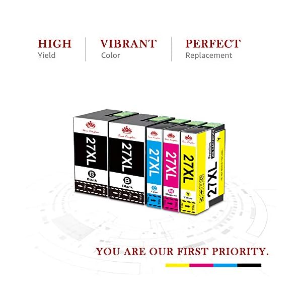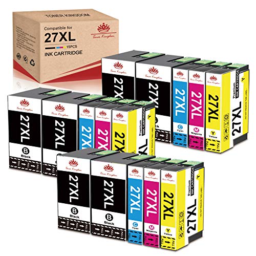 Contenido de la caja: 15 piezas Cartucho de tinta compatible 27 XL de alto rendimiento (6 negro + 3 cian + 3 magenta + 3 amarillo) Los cartuchos de repuesto para el 27XL, cada uno realizado en un proceso de registro, se prueban exhaustivamente para obtener resultados de impresión superiores.