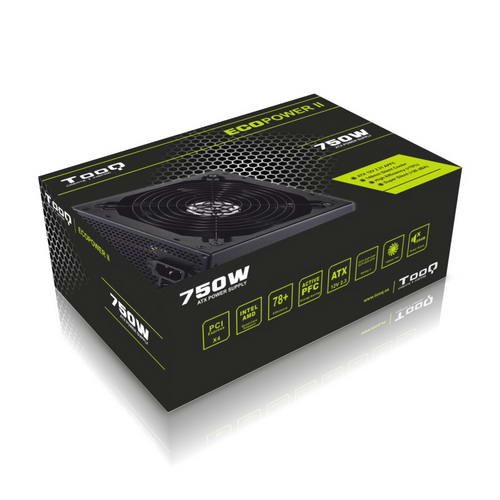 Descripcionecopower ii es la nueva generacion de las fuentes ecopower de tooq. La nueva version de fuentes incluye active pfc (pfc activo, pf 0. 99) de alta calidad, por lo que se garantiza al menos un 78% de eficiencia. Con la tecnologia pfc activo, la fuente produce mucho menos calor que una fuente con pfc pasivo, con lo cual se puede prolongar la vida util de la fuente. Además , la serie ecopower ii lleva ventilador super silencioso de alta calidad, doble rail + 12v muy estable y protecciones del sistema electronico de alta tecnologia. Especificaciones potencía maxima: 750w pfc activo (eficiencia 78%, hasta 83%) tipo: intel atx 12v v2. 31 compatible con atx 12v v2. 2, atx 12v v2. 01 etc protecciones: sobretension, sutension, cortocircuito, sobrecarga, sobre corriente, proteccion contra exceso de temperatura ventilador silencioso de 140mm con control automatico de velocidad (ruido 15dba) compatible con amd/crossfire y nvidia/s compatible con microprocesadores multi-nucleo cables extra largos para torres altas y todos los cables estan mallados railes de + 12v : 2x + 12v normativas: ce / rohs medidas: 160 x 150 x 86mm color: negroconectores: 1 x atx 24/20 pines, (520mm) x1 1 x atx 12v 8-4 pines, (620mm) x1 2 x pci-e 6+2 pines+2 x pci-e 6 pines, (520+150mm) x2 3 x sata, (520+150+150mm) x1 2 x sata + 1 x 4 pines (perifericos), (520+150+150mm) x1 3 x 4 pines (perifericos)+1 x 4 pines (disquetera), (520+150+150+150mm) x1.
