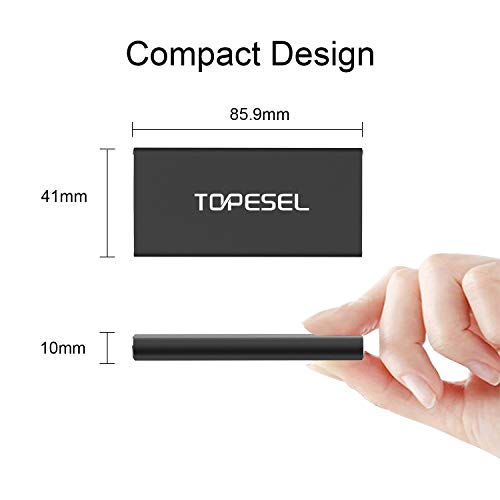 【Duradero】: Con una carcasa hecha de aluminio, el SSD es duradero, a prueba de golpes y al polvo. Certificado por FCC y CE, puede comprar el TOPESEL SSD portátil con confianza.