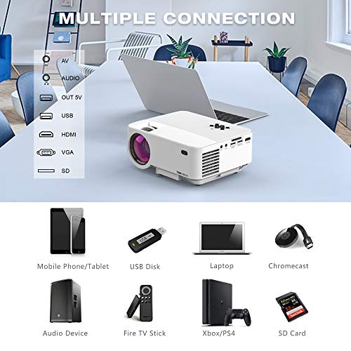【Multimedia Connection】- La interfaz incluye HDMI/ USB/ VGA/ AV/ Micro SD Card/ Audio Out 3.5mm. Compatible con los teléfonos inteligentes / tabletas / PC / TV / portátil / memorias USB / PS4 / reproductores de DVD / TV Box, etc. (Debido a los derechos de autor de la aplicación, ver las películas en Netflix, Prime Video, Hulu, sólo a través de conectar un ordenador portátil, Chromecast, dongle inalámbrico, TV Stick o Roku.)