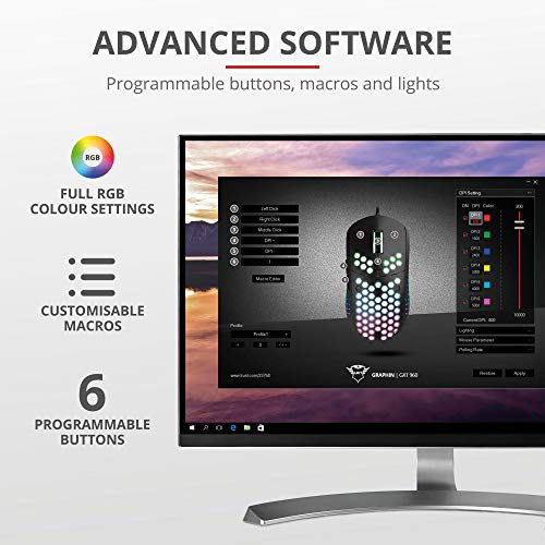 Carcasa perforada de solo 74 gramos para una respuesta rápida del ratón. Sensor óptico de alta precisión de hasta 10 000 ppp