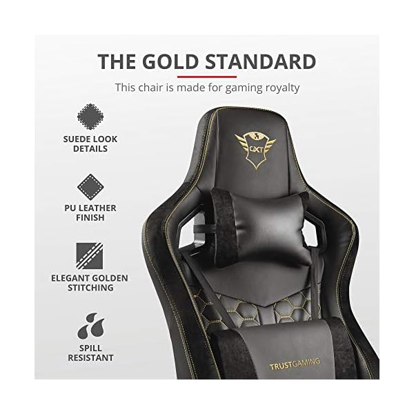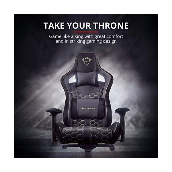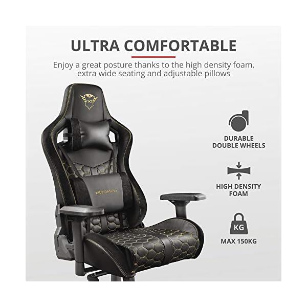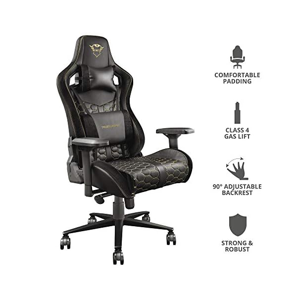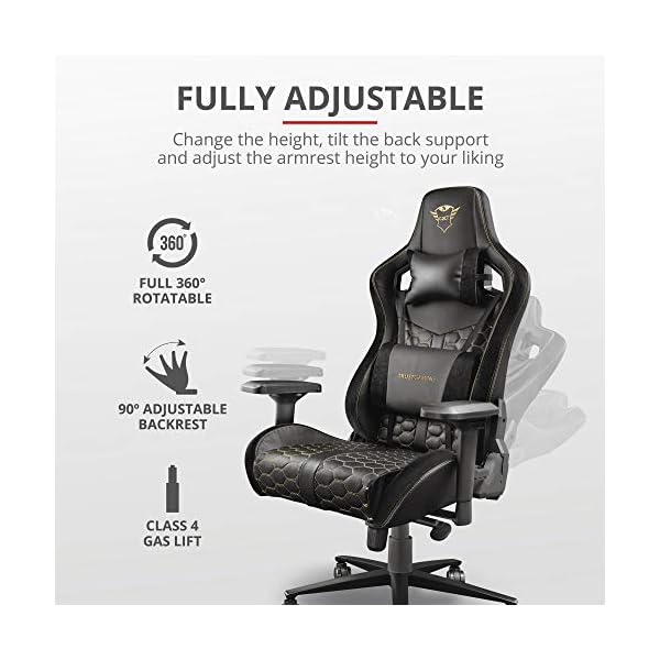 Trust Gaming Silla Gamer GXT 712 Resto Pro – Asiento Totalmente Giratorio 360°, Respaldo Ajustable Entre 90° y 180°, Silla Escritorio Ergonomica para Ordenador, Oficina, PC – Negro