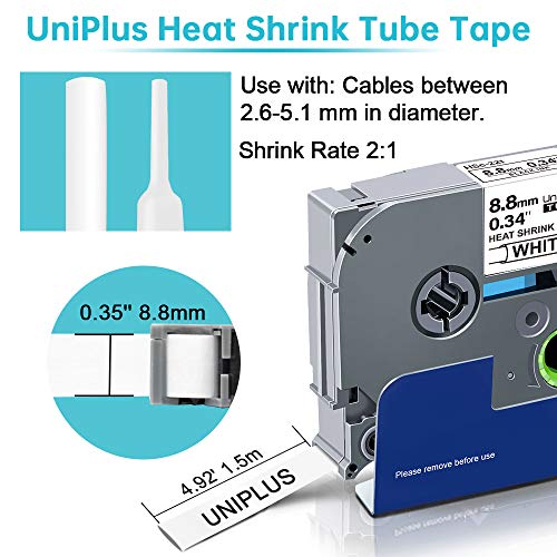 El paquete Incluye: 3 paquetes de cintas adhesivas termocontraíbles HS-221 (NO OEM); Dimensiones: 9 mm x 1,5 m; Color: negro sobre blanco.