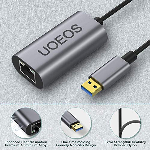 · Amplia compatibilidad: adaptador de red uoeos USB 3.0. Ampliamente compatible con portátiles USB 3.0. Por ejemplo: MacBook Air (2017), MacBook Pro (2015), ASUS VivoBook L203, HP Chromebook 14 pulgadas, Acer Chromebook Spin 311 y más (para alcanzar 1 Gbps, asegúrate de utilizar cables Ethernet CAT6 o superior) .