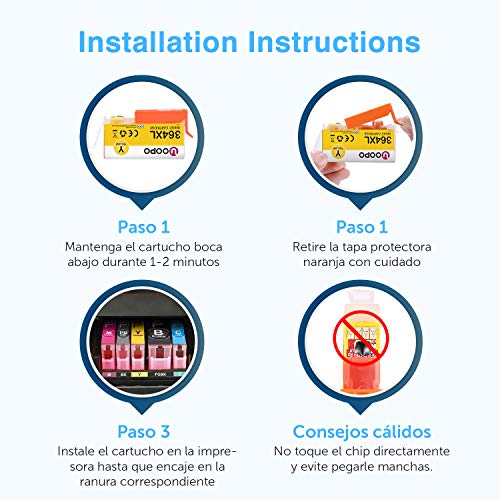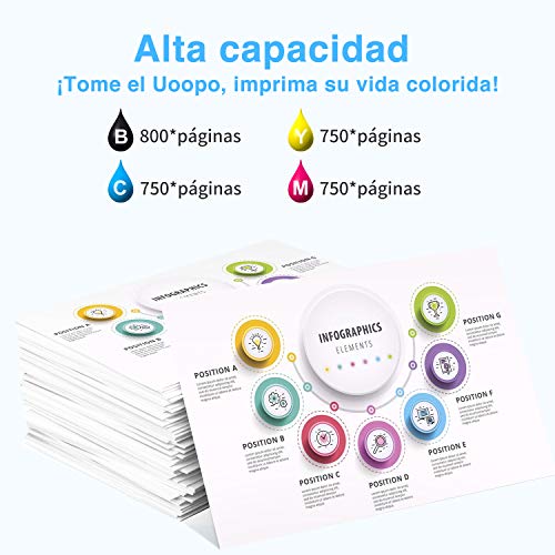 Uoopo se compromete a proporcionarle productos compatibles de alto valor: cartuchos de tinta. Chips de alta tecnología para garantizar la compatibilidad. Una variedad de tintas de alta calidad garantizan una impresión suave y colores delicados. Fácil de instalar y muy bajo costo.