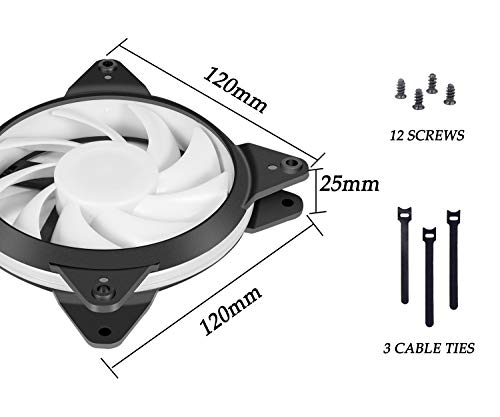 upHere Alto Rendemento PWM Ventilador de PC 120mm – Ventilador para Ordenador LED Blanco, Paquete de 3/T4WT4-3