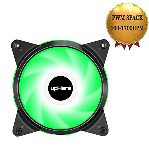 upHere Alto Rendemento PWM Ventilador de PC 120mm – Ventilador para Ordenador LED Verde, Paquete de 3/T4GN4-3