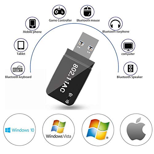 ⚙La tarjeta de red USB inalámbrica de doble banda 11AC es adecuada para la conexión inalámbrica de computadoras de escritorio y otros dispositivos, y puede proporcionar una forma conveniente y rápida de acceso inalámbrico a Internet. La tarjeta de red admite la función de detección automática y puede ajustar automáticamente la tasa. ⚙Cumple con los estándares IEEE 802.11a, IEEE 802.11b, IEEE 802.11g, IEEE 802.11n, IEEE 802.1x, IEEE 802.11e, IEEE 802.11i, IEEE 802.11ac