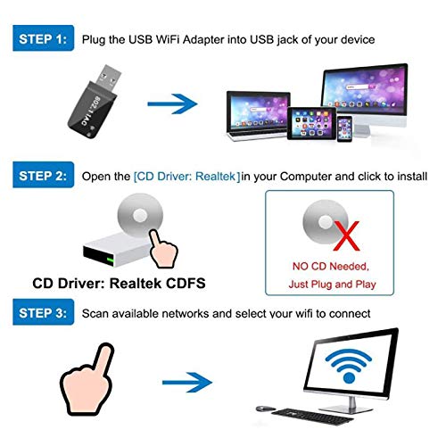 💻【Pequeño y fácil de usar】Antes de conectar el adaptador de red inalámbrica al puerto USB, primero instale los controladores a través del disco MINI CD. Una vez que haya ejecutado el software, simplemente inserte el adaptador para conectarse.