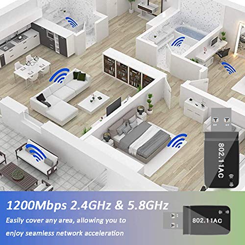 ⚙Esta es una nueva tarjeta de red inalámbrica de doble banda mini 1200Mbps 2.4GHz y 5.8GHz, que utiliza el último chip de alto rendimiento Realtek RTL8812, interfaz USB3.0, la transmisión WiFi es más eficiente y ahorra energía