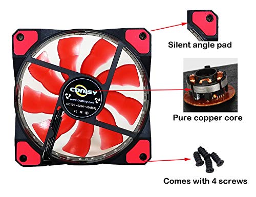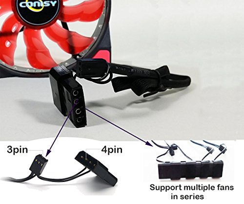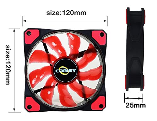 1 x CONISY 12cm Ventilador para caja de ordenador – rojo